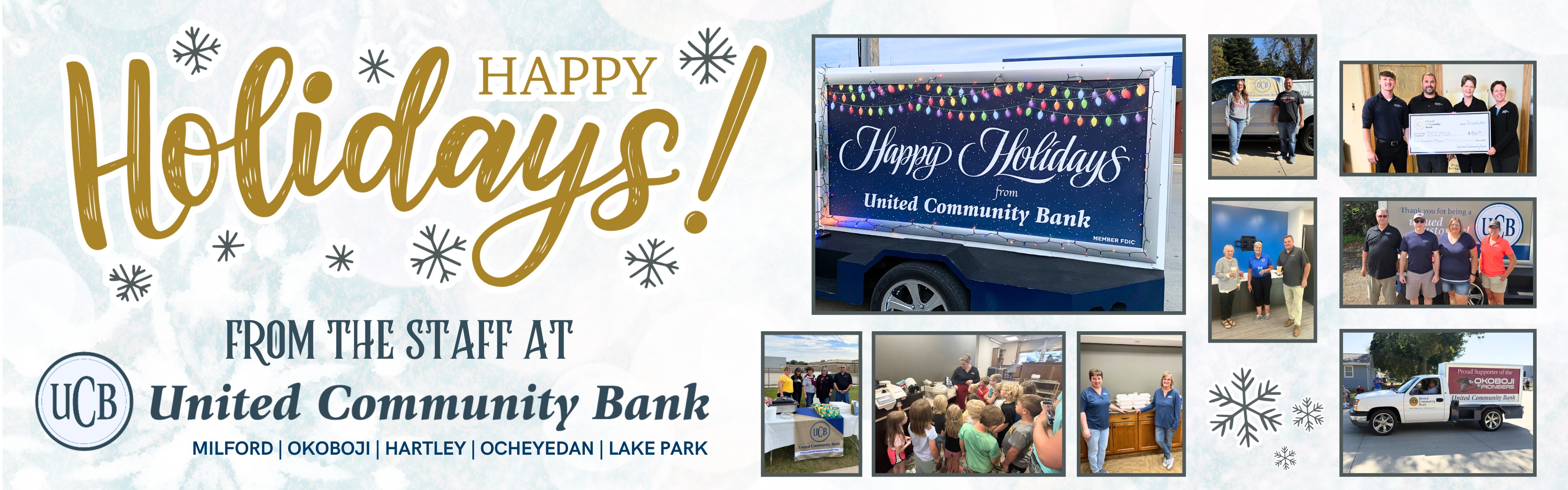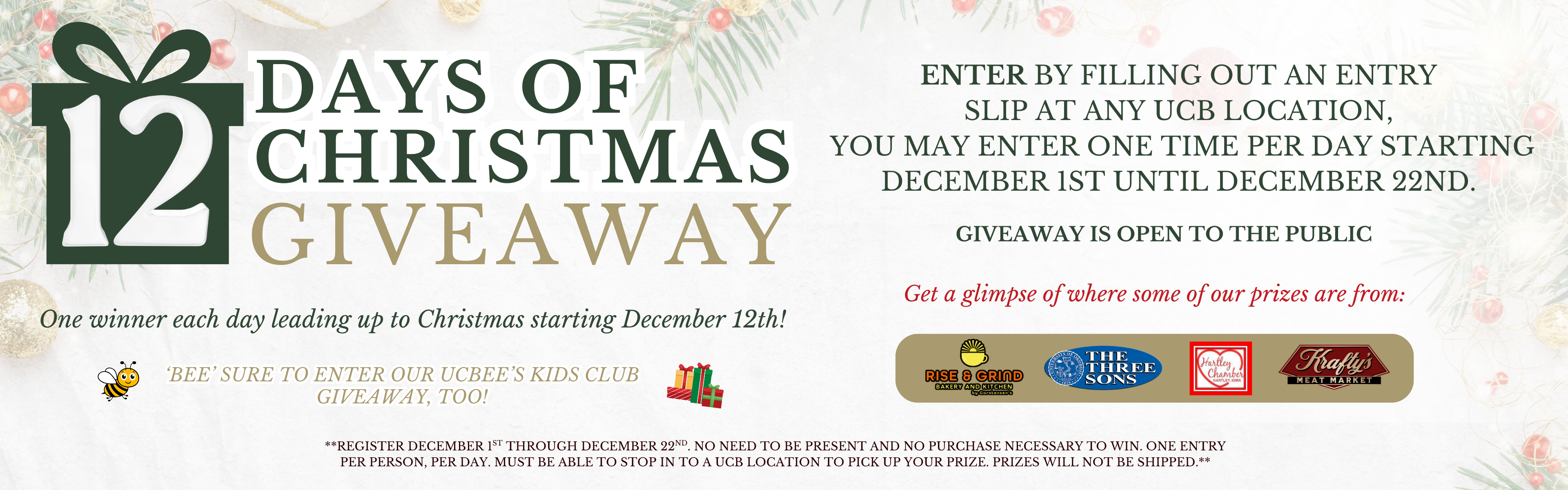 We will be closing at noon on Wednesday, December 24th and closed Thursday, December 25th, in observance of Christmas. Regular business hours will resume on Friday, December 26th. Online and Mobile Banking will still be available.