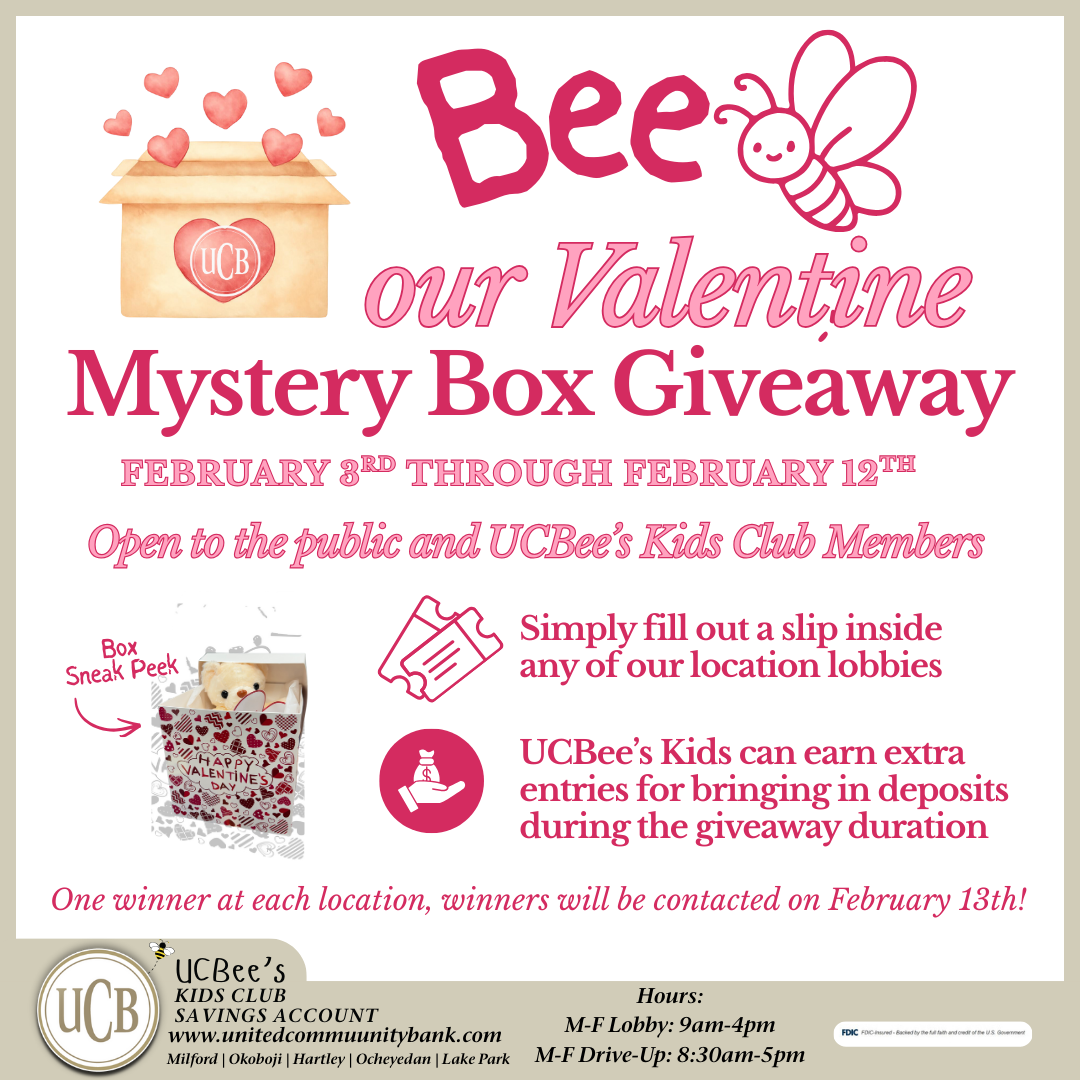 When a new account is opened with an initial deposit of $5.00 or more, UCB will match it with a $5.00 gift. Kids can enjoy both free eStatements and paper statements, along with exciting perks like prizes, giveaways, birthday savings, and more. Every time a deposit is made inside one of UCB’s location lobbies, children get to choose a prize from the Treasure Chest, making saving money a fun and engaging experience. Stop into your local branch to open an account.